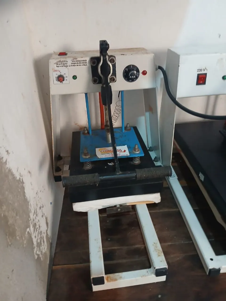 Máquina de estampar versátil para personalizar blusas, canecas e azulejos. Ideal para criar produtos únicos e exclusivos. Mando entregar