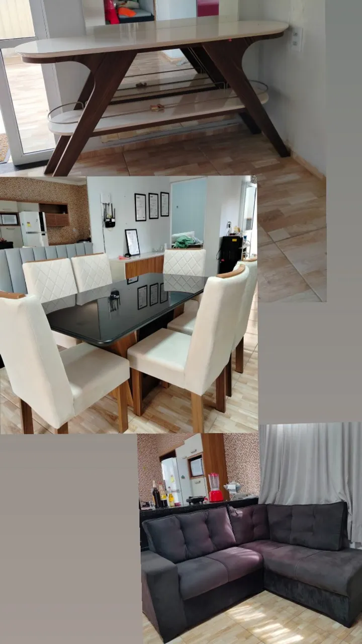 Conjunto de móveis seminovos para sua casa. Sofá de canto espaçoso e confortável, ideal para relaxar e receber visitas. Mesa de seis lugares, rack, Buffet, aparador, duas camas