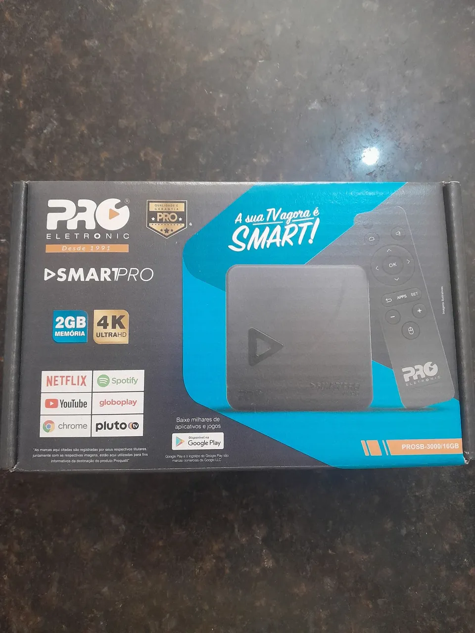 Transforme sua TV em uma Smart TV com o SmartPro da ProEletronic! Assista Netflix, YouTube, Spotify e muito mais em 4K Ultra HD. Baixe milhares de aplicativos e jogos e aproveite uma experiência completa de entretenimento.